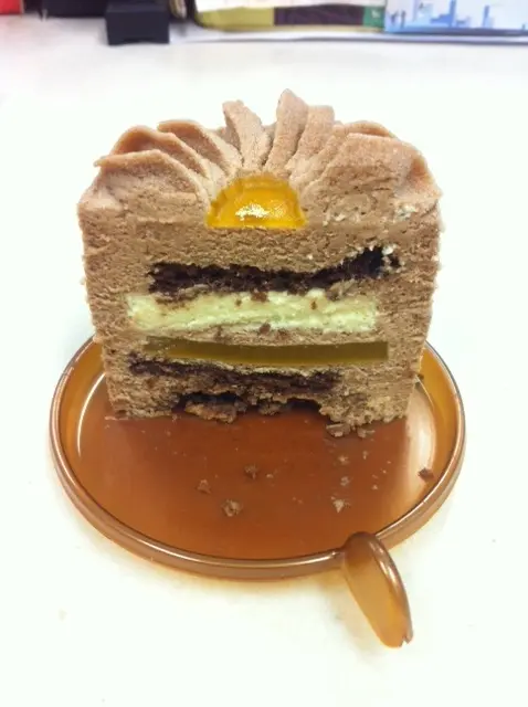 熱情果雙重朱古力蛋糕,內裡層次分明,以古古力慕思為主,熱情果味不太突出。