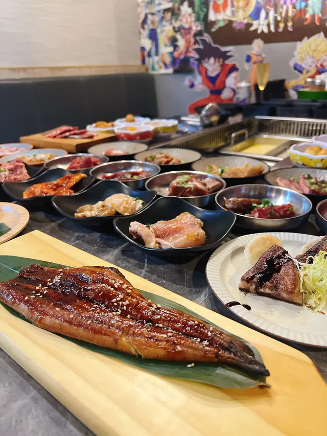 燒牛肉、燒豚肉、燒雞肉、燒海鮮,和風小食、炸物、日式湯麵、蔬菜、鍋物、甜品雪糕、汽水茶任飲醬