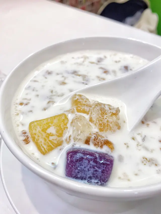 鮮奶裡面嘅桃膠分量巨足,味道都唔會好甜,非常啱鍾意清淡嘅朋友仔☺️一邊傾偈一邊食嘅時候,果凍般嘅桃膠裡面仲藏著芋圓嘅Q彈,增加咗口感😋