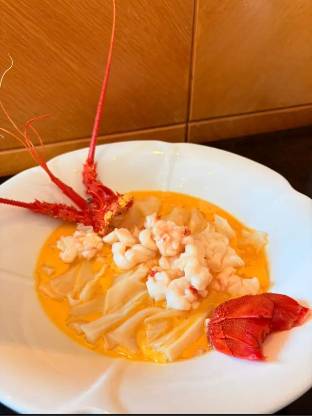「花雕雞油鮮拆澳洲龍蝦配陳村粉」就更是驚喜嘅一款,雞油同花雕酒蒸出來的陳村粉,每一口都吸滿酒香,加上新鮮嘅澳洲龍蝦肉,同之前喺嬌姐食到嘅各有千秋。