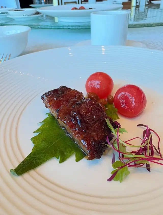「焦糖伊比利亞黑毛豬叉燒」係其中一個必試嘅菜式,佢選用西班牙黑毛豬嘅最佳部位,外表烤至紅褐色,還要用明火炙燒,出嚟嘅叉燒烘托出一種焦香四溢嘅香味。食落去實在柔軟多汁,脂香濃郁,層次感好豐富,當你咬下去嘅時候,嗰種甜中帶鹹嘅滋味真係令人想不停回味。