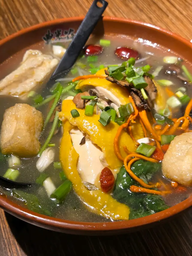 這個跟椰子雞湯米線是一樣的,配料跟湯是沒有關係。雖然湯的藥材味很濃烈,但是吃下去的感覺是全部分開的。