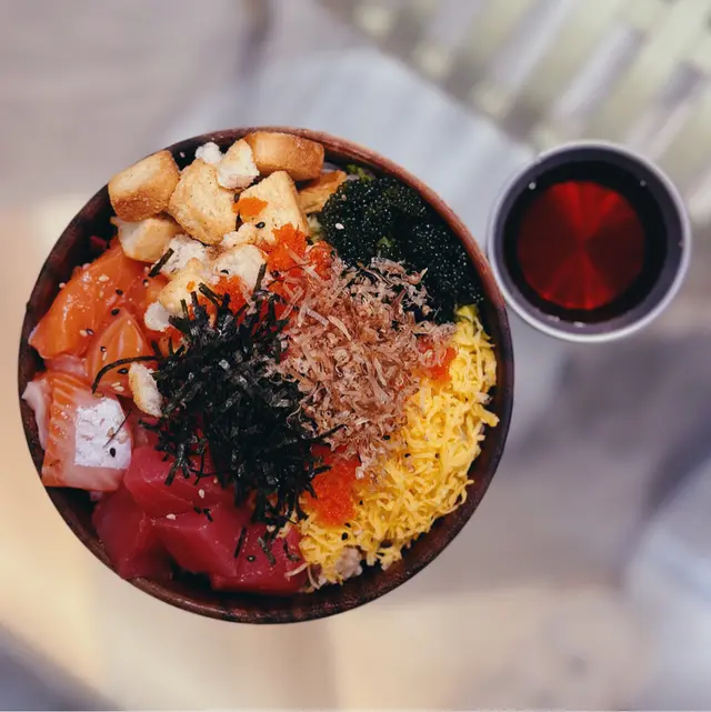 配色超靚😍 材料新鮮,每啖都有唔同口感,由嫩滑魚生到香脆多士,再到鹹香飛魚子,層次豐富!柴魚醬油鹹香適中,完美帶出海鮮嘅鮮味,完全唔膩,食到最後都唔會悶😋