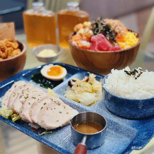除咗Poke,佢哋嘅便當都值得一試!雞胸係用慢煮方法處理,肉質嫩滑又唔鞋口,入口即化~ 配搭日式炒雜菜、醬油糖心蛋、白飯,再加上我揀嘅黑椒牛肝菌醬,成個便當豐富又有營養🍱