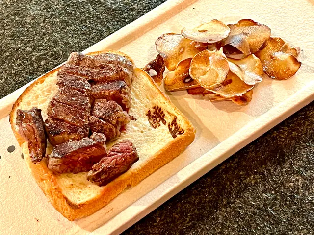 美國🇺🇸牛肉厚燒:美國🇺🇸牛肉偏瘦,肉質幾軟熟,要咗 medium rare, 師傅控制生熟程度控制得好好👍,牛肉🥩裏邊仲係粉紅色,幾多肉汁😋;不可不提 煎烤到脆卜卜嘅獨子蒜片,非常香口,就咁食好味,配牛肉一齊食更添層次😋