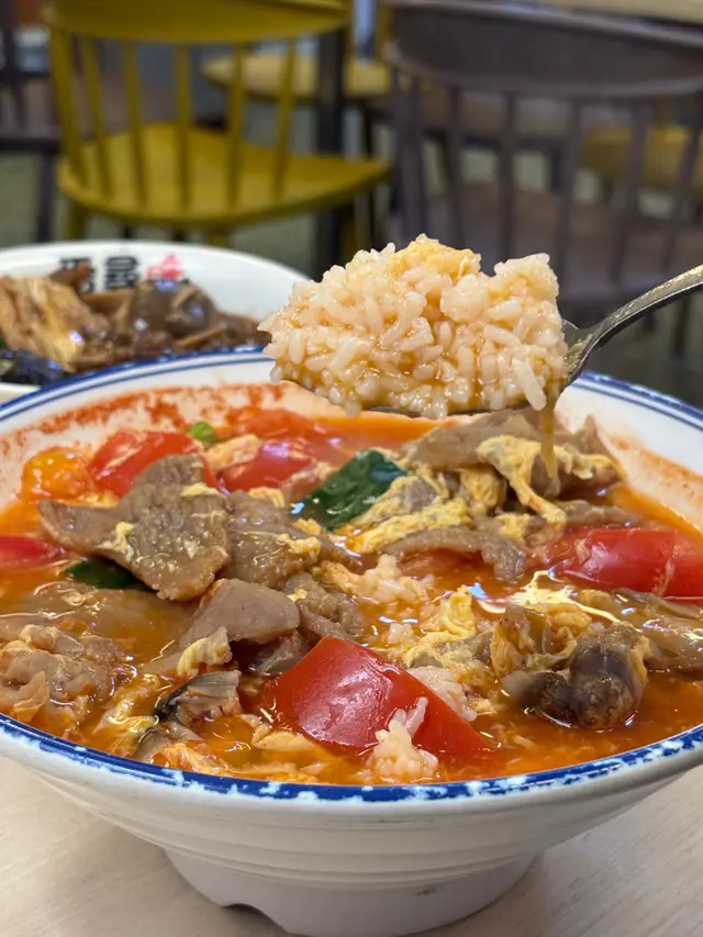 🍲 湯底好濃郁鮮茄甜味, 配上蛋花更香, 飯粒吸滿蕃茄汁又唔會太腍; 牛肉份量十足$46大大碗, 唔會水lel lel勁飽肚真心抵