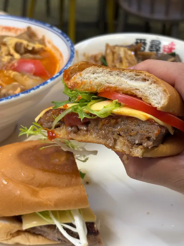 🍔 落單後店員通知圓包賣晒轉長包, 同樣烘到外脆內軟, 經典配料芝士蕃茄生菜, 加埋又厚又Juicy嘅漢堡, 加埋少少茄汁就係童年回憶嘅味道