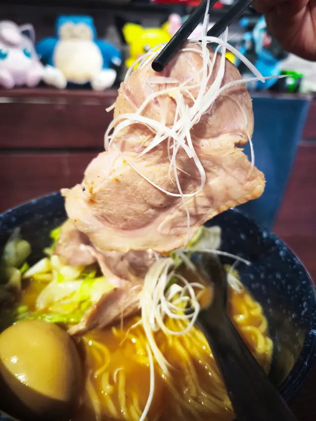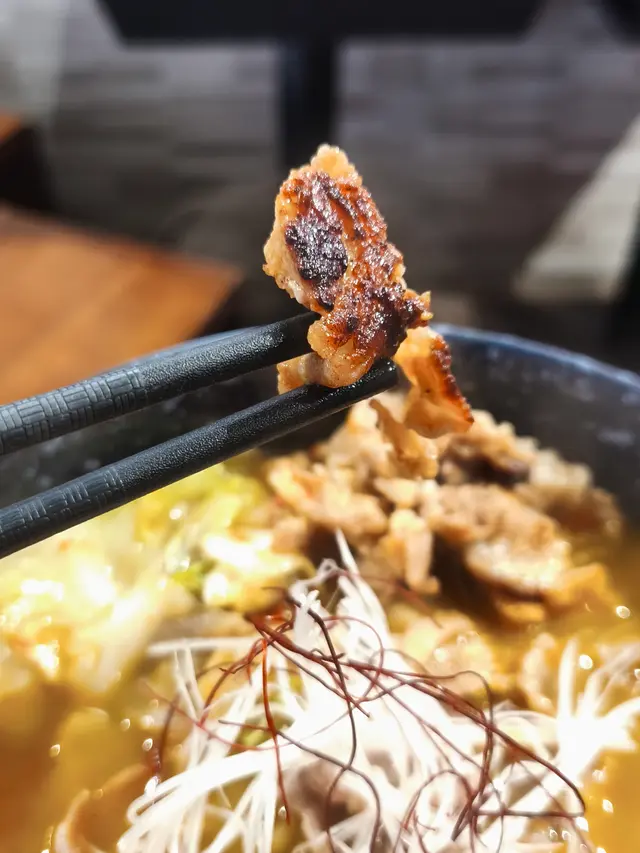 2) 辣豬肉拉麵 - 叫左中辣。 湯底原來係老闆用12款唔同辣椒來淆製而成,絕不落辣椒粉,所以食起嚟好順口,唔會感到好刺激,食到原本辣椒嘅香辣味!豬肉燒過,有焦香感。每條拉麵都吸收咗辣湯精華,非常惹味!