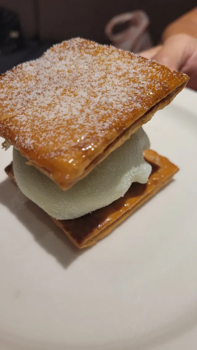 抹茶雪糕麻糬拿玻崙,又係一個口感豐富好食嘅甜品,拿玻崙夠酥脆,兩樣疊食口感超match!雪糕麻糬嚼勁十足,兩者夾埋太過癮。