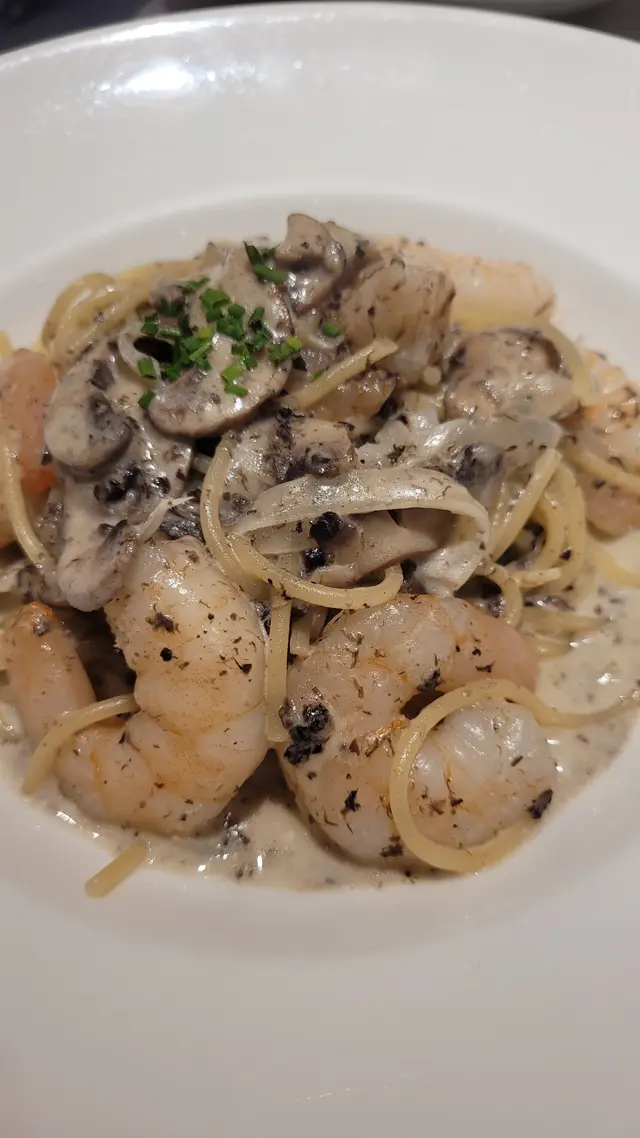 同事揀大蝦黑松露忌麻蘑菇意粉,黑松露忌廉汁好味道,我地覺得比起一般西餐嘅黑松露汁好食得多,意粉彈牙al dente🍝,吸晒醬汁,掛汁啖啖好滋味!