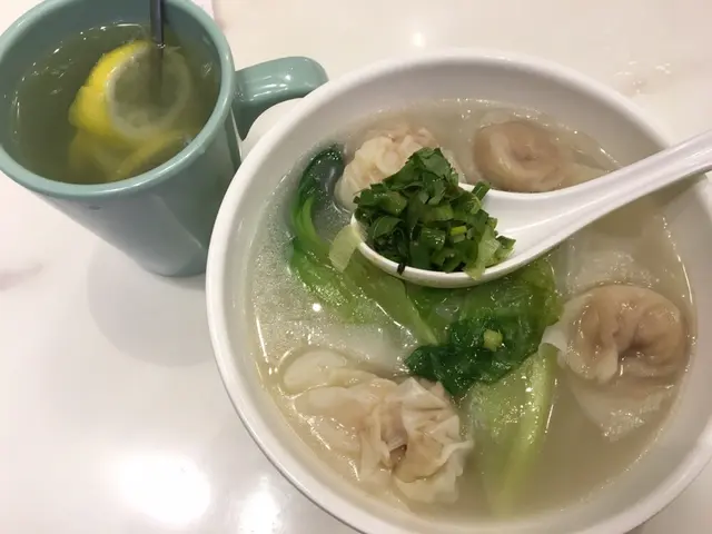 雲吞大大粒👍🏻切開看用料十足,大大隻蝦,是一隻有鮮味的蝦,豬肉肥瘦比例恰到好處,看到有很多一粒粒的大地魚粉,入口果然充滿大地魚香😛