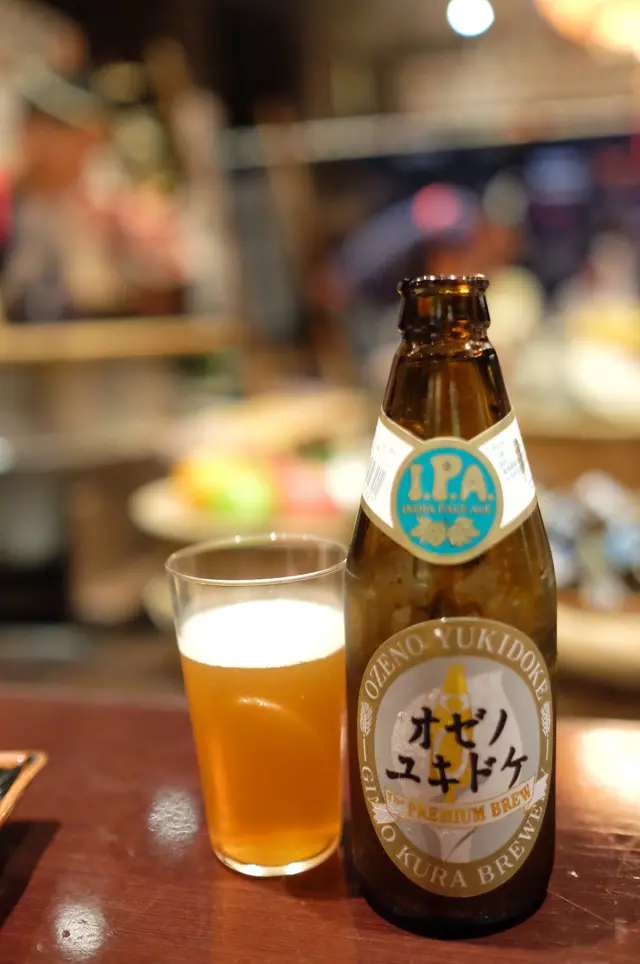 這夜我們就先點份「燒雞泡魚味醂乾」 ($130) 小食,配瓶日本釀製IPA啤酒Ozeno Yukidoke ($98)。金橙黃色的啤酒入口清新,帶頗香濃的啤酒花及麥香,並且不算很苦澀。