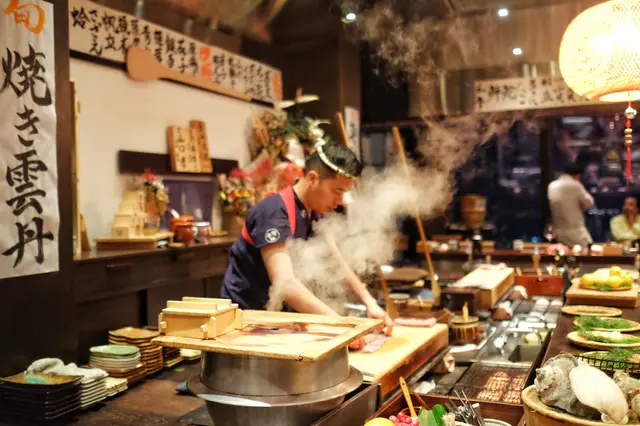 大家如果看到想吃的,只要跟師傅講就可以了。每當人客點菜後,日籍師傅會用日語大喊confirm order,氣氛熱鬧。加上這爐端燒房的佈置,真的差點以為自己身在日本呢。而且吃到一半差不多約8時左右,師傅們會示範傳統用木槌在大木桶中樁年糕,又邀請食客一齊樁年糕。各食客無論試樁年糕的、抑或只影相拍片的,都玩得好開心。互動一番過後全場氣氛熱鬧起來。
