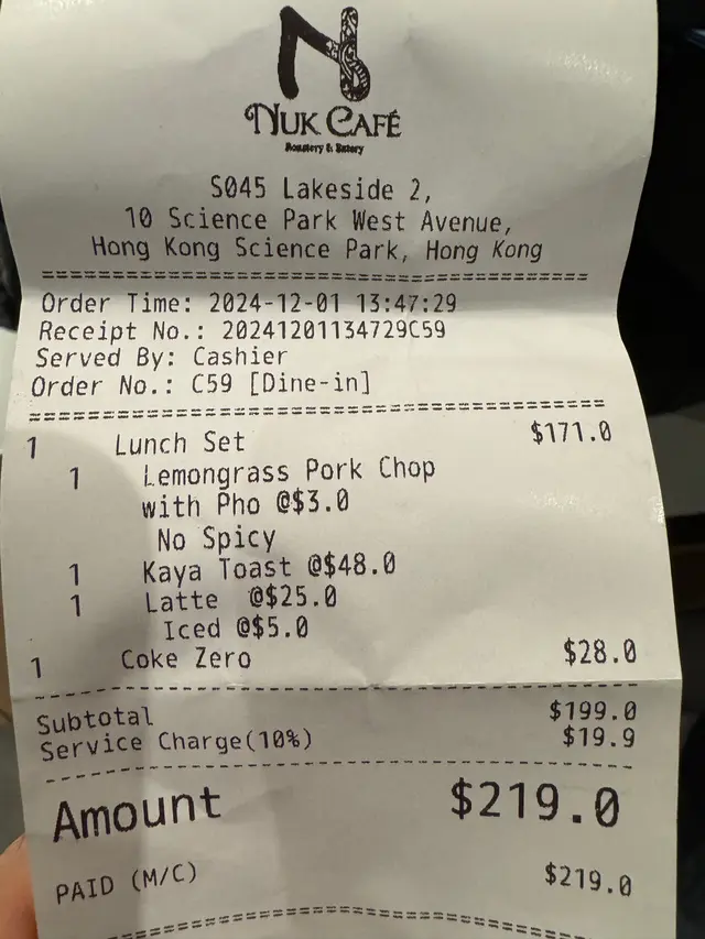 嘢食部分都叫做無咩特別啦,QR code落單,無倒水比我地。個豬排都幾乾…好在咬得開,但舊骨痴住嘅肉已經唔想咬,河粉正常。咖央多士好脆!醬都ok,不過內餡個牛油仲係少少凍🤔