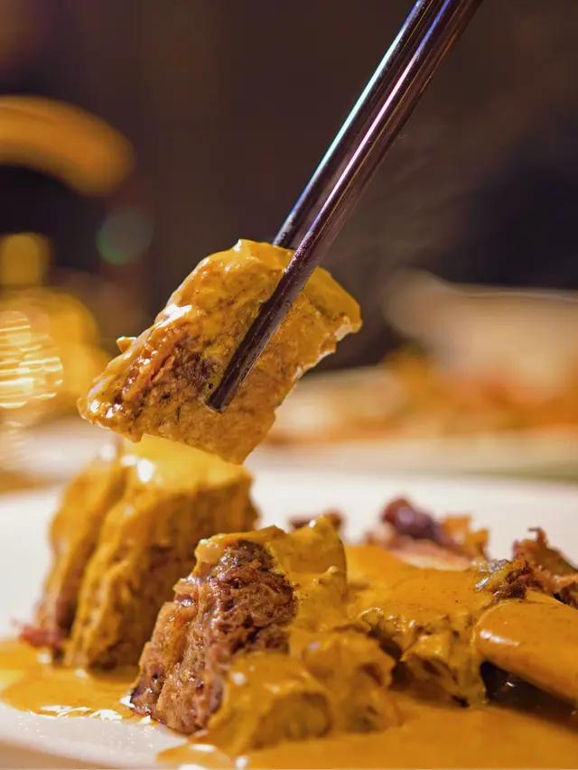 「咖喱原條牛肋骨」($368):呢道菜上枱嗰陣真係霸氣十足!原條牛肋骨燉煮得極之入味,最正係有專人喺席前用剪刀幫你剪開,睇住啲肉汁咇出嚟,真係流晒口水🤤。個靈魂在於個 「秘製咖喱汁」,香料味層次複雜,唔係死辣嗰種,配埋軟腍嘅牛肋肉,送飯真係無敵!