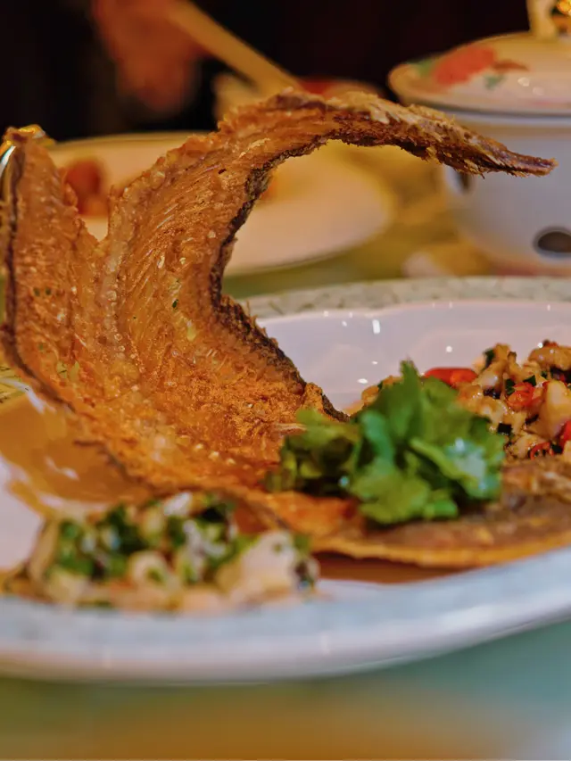 「辣不辣韭菜生煸方利」($598):師傅將方利起肉,魚骨炸到好似風帆咁豎起,造型滿分!方利肉質本身就細嫩,用避風塘式做法加上大量韭菜爆炒,惹味得嚟又唔會蓋過魚嘅鮮味,外脆內軟,鑊氣十足!🐟
