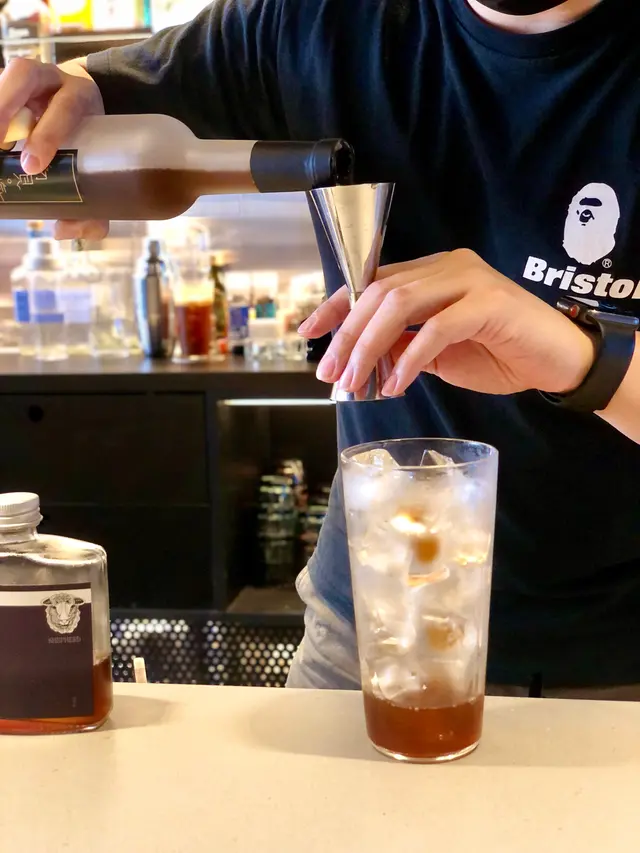 呢度用嘅梅酒係用咖啡而釀製嘅梅酒,我都係第一次聽咋!而分量方面,就見到咖啡師係用兩杯梅酒,一杯cold brew再加上梳打水!