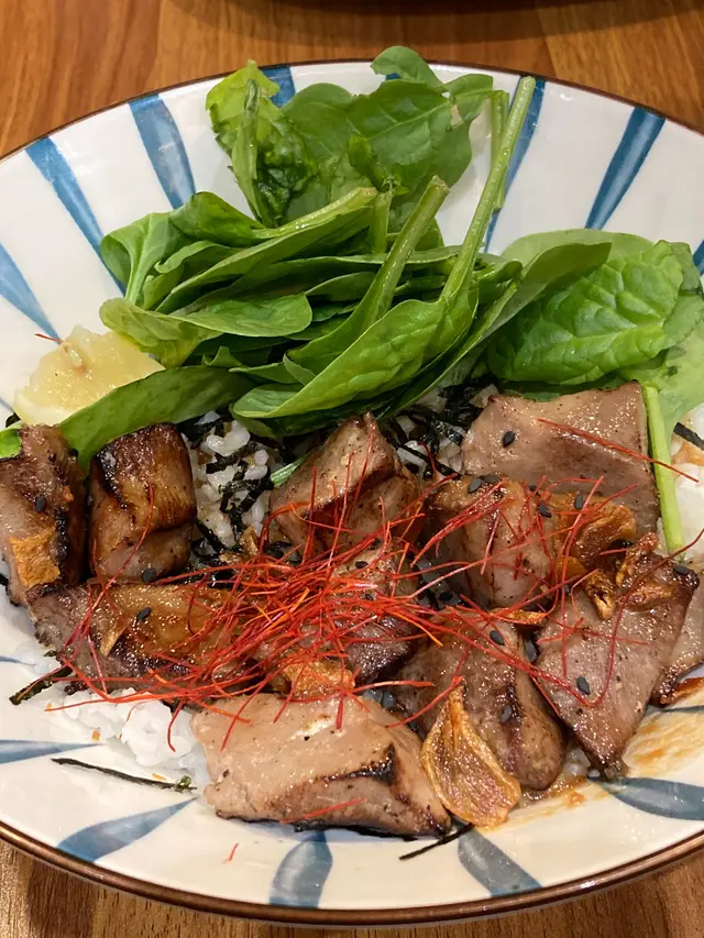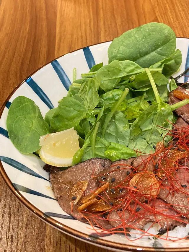 熟成厚切牛舌丼 $78: 8.5分, 再來一客熟成厚切牛舌丼, 配搭跟熟成厚切牛舌丼有點相似, 但就由黑毛和牛牛扒, 變成熟成厚切牛舌. 牛舌質感挺有咬口, 用菜蔬包著同吃, 效果挺不錯.