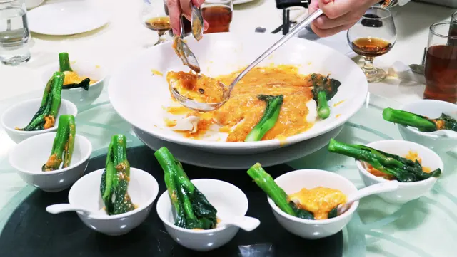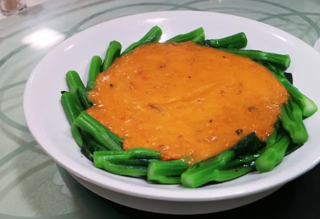 飲完個令人瘋狂嘅湯之後,跟住到蝦籽柚皮鵝掌,可能之前個湯太出色,令味蕾一下子被寵壞了,令呢道菜有個對比、有一個落差。只可說味道普通,柚皮無澀味,整體一般。