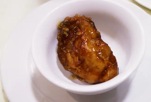 到桂花蜜餞金蠔,金蠔配桂花蜜我還是第一次試,味道出奇地討好,只可惜蠔本身唔夠肥美,呢一道菜盡顯師傅調味功架。
