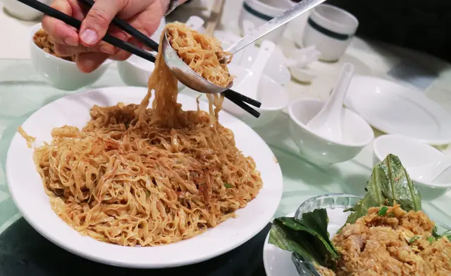 有識食的爐兄寫菜單,咁就當然夠晒豐富同飽啦,最後仲有薑蔥蝦子撈麵同埋荷葉飯。呢個時候,我已經飽到投降,而家P就繼續食得起勁,事關荷葉飯同埋粗麵佢都係好鍾意食嘅。粗麵嘅薑蔥同蝦籽都好香,可惜嘅係粗麵嘅鹼水味略嫌過重。荷葉飯阿P話夠晒軟熟,材料足亦夠味。