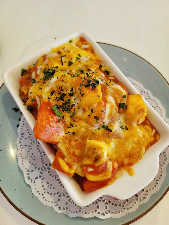 雖然豬扒未至於勁厚,但焗至表面焦香,內裡的蕃茄帶來的酸度,令油膩感減輕了不少,醬汁拌和飯粒一齊食,更是惹味。