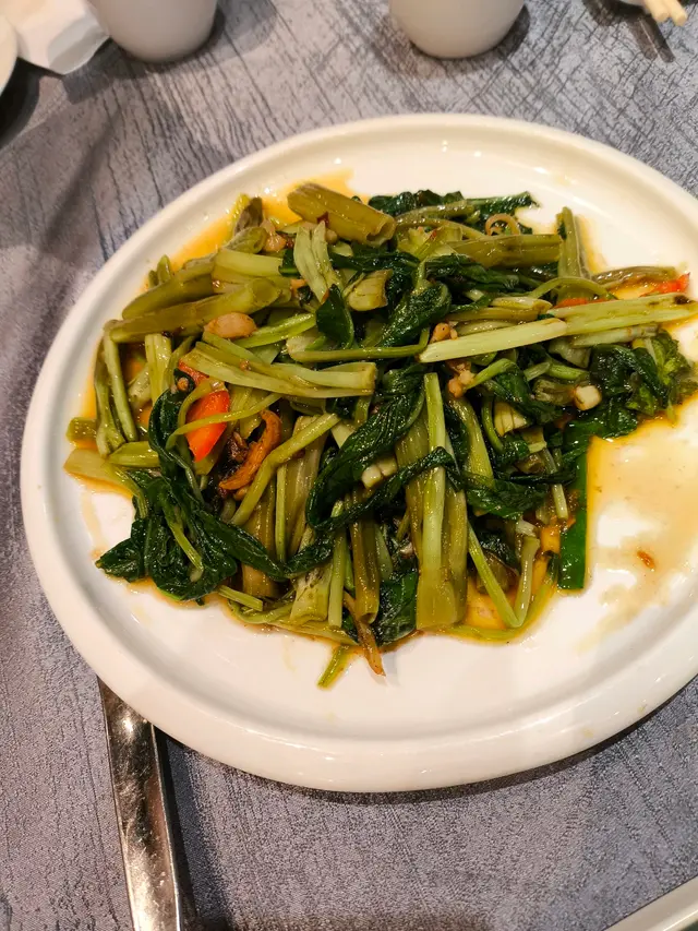 上桌已聞到香噴噴的馬拉盞炒通菜,越食越惹味。