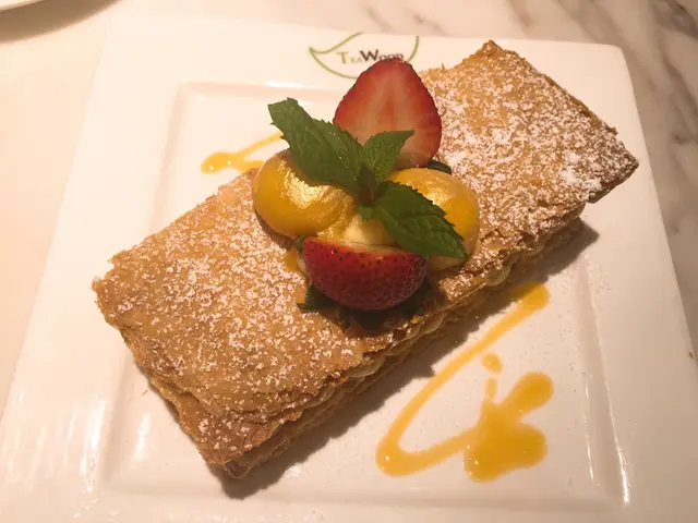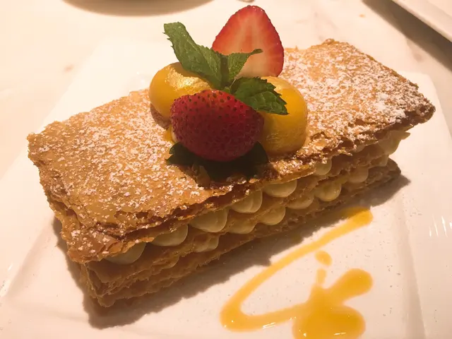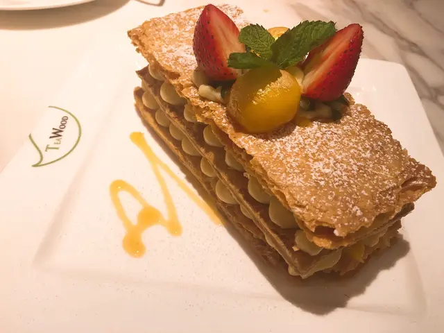 賣相精緻,一層層薄脆加入奶油,再夾著薄脆,吃入口可嚐到其脆脆跟奶油的軟滑口感,加上芒果清香,格外清新鮮甜又酥脆