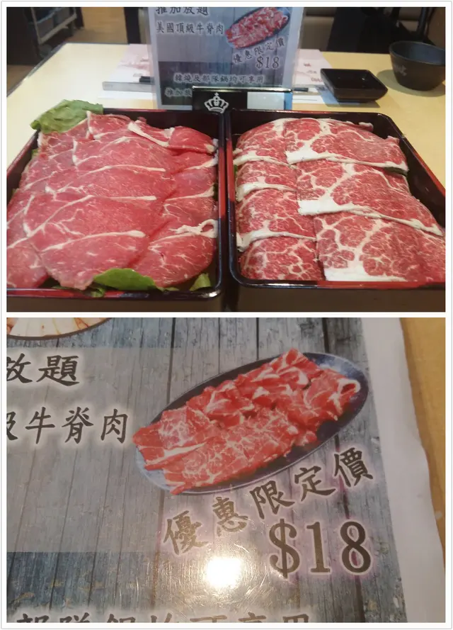 想再食得高級一點的,可以加18元加來客牛脊肉,雪花夠,肉味濃,大大塊足足有6塊,超抵食!不過,我覺得單食放題不加點也已經多到食不完!