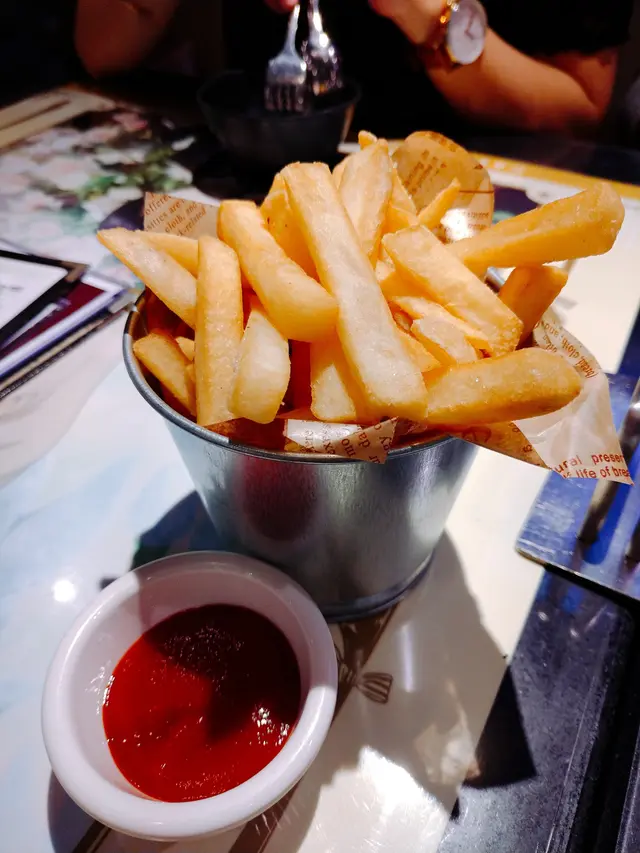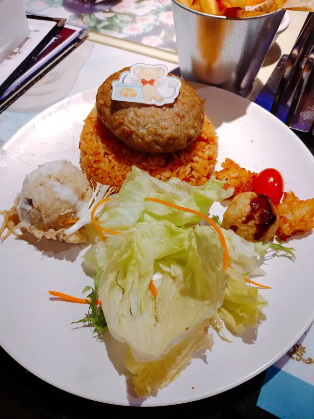 小妹同朋友一行三人嗌咗三樣嘢食,分別係芝士白汁蕃茄肉醬薯仔長粉($62)、便當盒(分別有飯糰、腸仔、枝豆、玉子燒、煙肉蘆筍卷、草莓、火腿)($88)、芝士漢堡排蕃茄雞肉燴飯拼米紙沙律+星形薯餅+章魚燒($82),味道一般,同一般Cafe水準無異,完全冇驚喜位,但賣相還算可以。小妹原以為會有人物造型嘅食物出現,例如基路仔形飯糰呀咁,點知只係以卡通樣米紙取代,令我有啲失望。