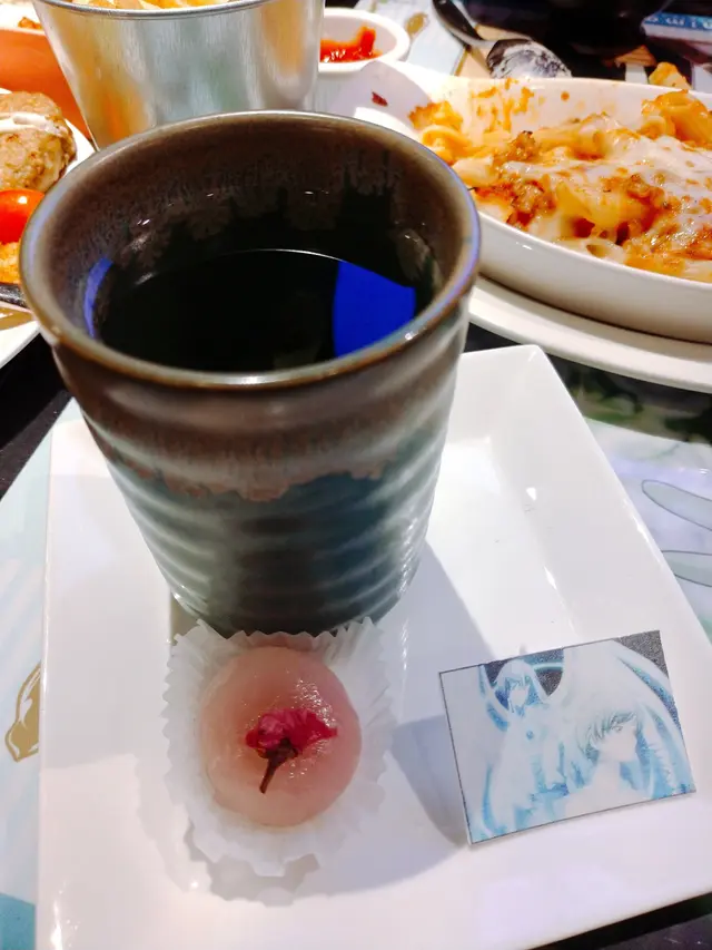 嘢飲方面,小妹只係嗌咗一杯「雪兔」綠茶($34),熱綠茶配上櫻餅,米紙上有雪兔哥哥嘅樣,製作同樣係有啲Hea。