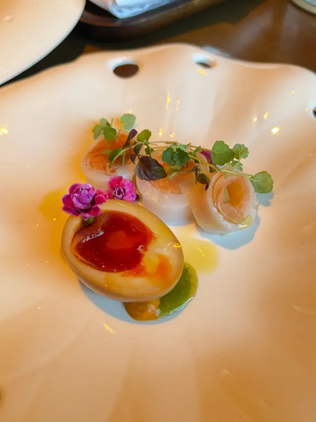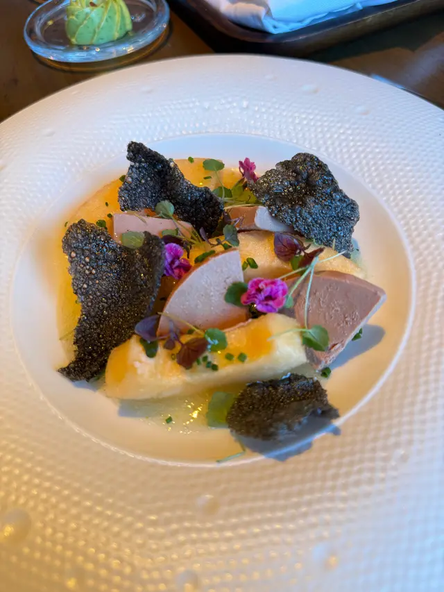 頭盤選咗French Foie Gras Terrine及Scottish Smoked Salmon & Calamari Roulade,賣相精緻。鵝肝伴以哈密瓜和柚子醬汁,