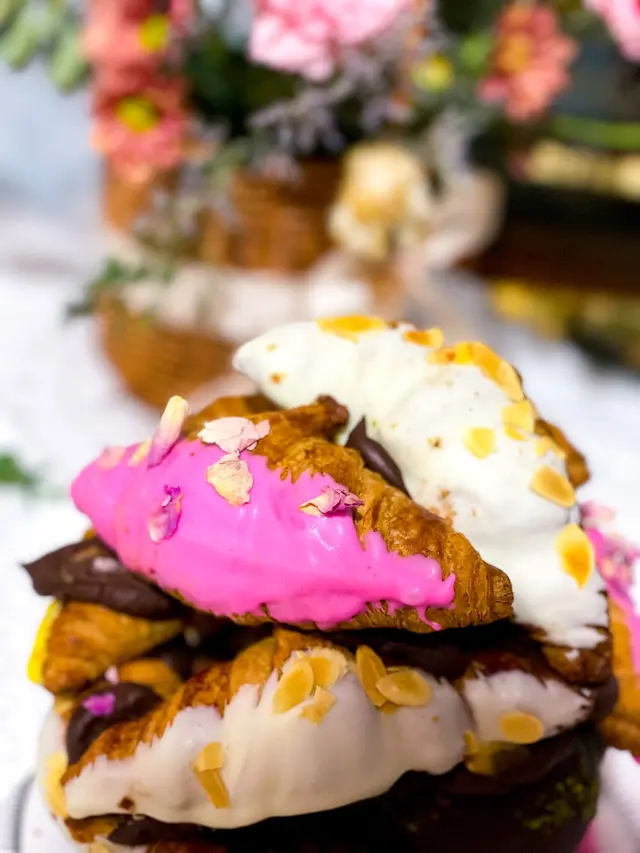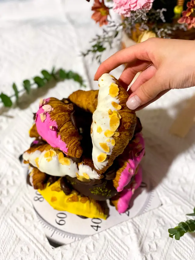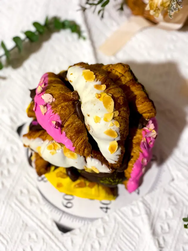 牛角包外有粒粒杏仁片和白朱古力,內餡有細膩柔滑的法國忌廉同埋紐西蘭mascarpone cream,香濃細滑!
