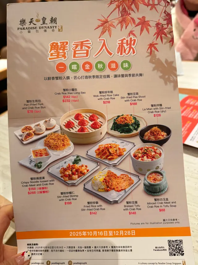 皮薄鮑汁小籠包蟹粉必推 Dap_dap等级42025-11-24 关注 ✵小朋友喜歡食小籠包,這𥚃吃小籠包真不錯,小籠包皮薄餡靚,女女一次過吃了六個,小籠包外層薄皮,內層包有豐富肉汁,一口一啖,很棒的感覺。✵十一月,就是食大閘蟹的季節,蟹粉白玉盅,淡淡的蟹粉香味,加入了碎豆腐,蟹粉很有口感,微辣的味道,很開胃。✵雪菜咸肉炒年糕,這道是我很喜歡的菜式,炒年糕軟糯、咸香開胃,微咸的酸菜,再加上半肥瘦的咸肉,口感煙靭。✵另一款菜式菜肉雲吞豬骨湯拉麵,拉麵煙韌彈牙,菜肉雲吞大大只,而且餡料豐富。以上食记乃用户个人意见 , 并不代表OpenRice之观点。赞好分享皮薄鮑汁小籠包蟹粉必推 樂天皇朝 (利舞臺廣場) https://s.openrice.com/QrLT0ZrLV00检举 张贴 评分5味道5环境4服务4卫生4抵食用餐日期2025-11-20用餐途径堂食用餐时段晚餐