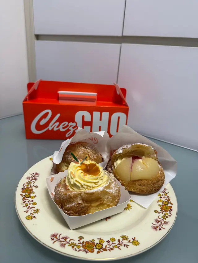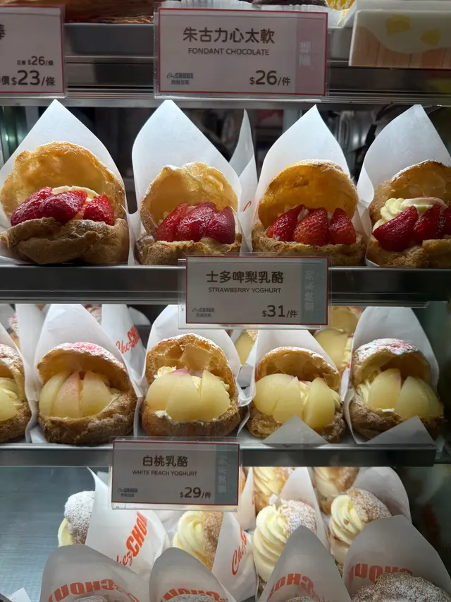 3️⃣ 桃味泡芙 🍑😎 桃味泡芙造型超可愛,似足大口仔咁塞滿泡芙餡料同桃肉😄!桃肉多汁,果肉軟滑嫩口,甜度剛剛好,微微酸澀增添層次感,清新又滿足🍃。同其他兩款比,呢個桃味更清爽,夏日必試!🌴