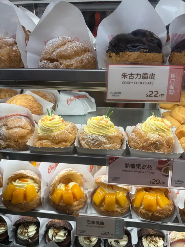 2️⃣ 荔枝泡芙 🌺💖 荔枝連楊貴妃都為佢瘋狂😍,古時皇帝千里送荔枝只為博美人一笑👸!呢款荔枝泡芙外表超吸睛,淺橙色cream鋪滿泡芙頂,貴氣十足✨!咬一口,荔枝嘅甜美多汁💦同濃郁果香撲鼻而來,口感柔嫩,微酸嘅餘韻令人回味😌。仲有荔枝果肉增添口感,超有驚喜!🥰