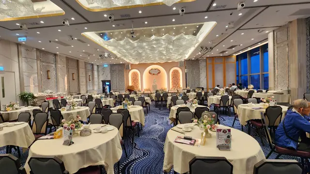 餐廳裝橫堂皇,很有宴會感,感覺是為婚宴而設的。今晚應該是無婚宴,接受散客用餐。