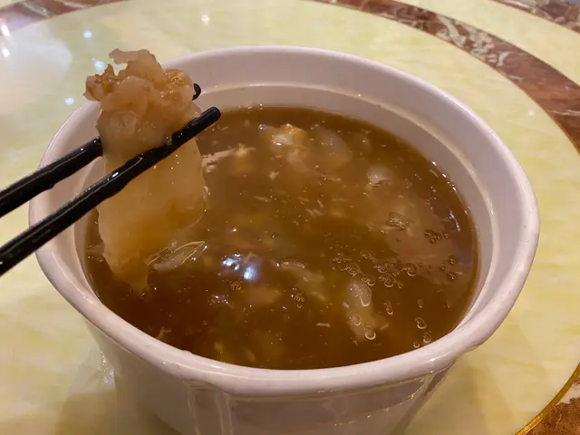 蟹肉扒翅,老火湯底,用筷子夾住來食的翅好大一梳,在外還是第一次食咁大塊的翅