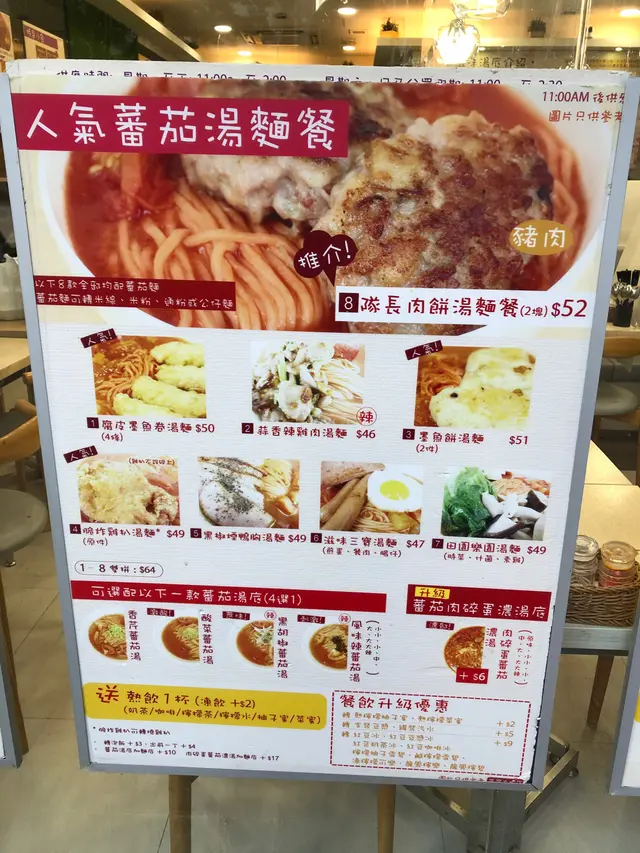 1至8號蕃茄湯麵餐的蕃茄湯底都有4️⃣款比你揀,分別有香芹蕃茄湯、酸菜蕃茄湯、黑胡椒蕃茄湯、同埋風味辣蕃茄湯。
