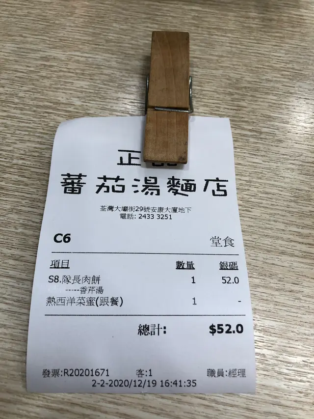 講翻我叫個餐先,8號隊長肉餅湯麵餐(2塊),配熱菜蜜,$52 。價錢方面$52黎講的確比較貴,依個價錢係荃灣的確有幾多的選擇。下午茶時段野食黎得幾快,賣相唔差,大大塊蕃茄🍅、肉餅、同埋其他配料,餸多到麵都見唔到,其實係麵少到見唔到。飲啖湯先,蕃茄湯底比較淡,勝在湯麵食不到味,蕃茄整的麵條煙煙韌韌,口感幾特別,唔係好爽口鮮甜,唔係其他麵店的濃郁。肉餅兩塊都算是大大塊,厚身,食落去不過不失,每啖都可以大大啖,味道口感比較普通,如果可以有芝士或者其他配搭會更好。最後個杯跟餐的熱菜蜜,比較啖,啖而無味,溝得太多水,當日天氣比較凍,杯熱菜蜜算是帶了一絲溫暖。