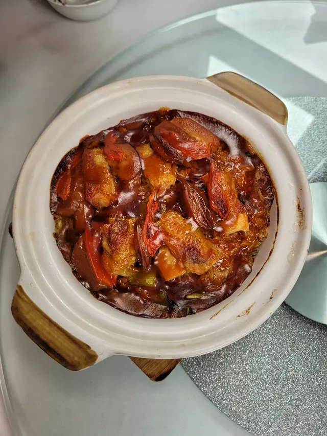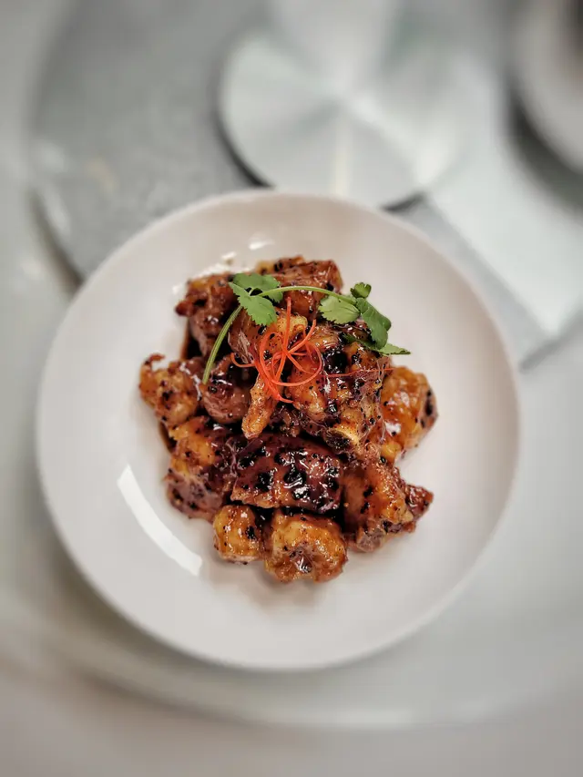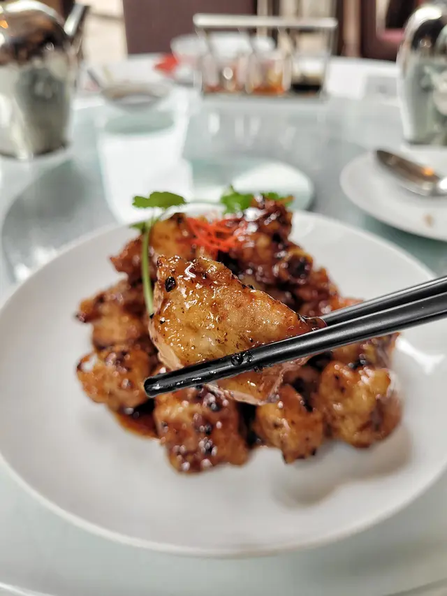 「梅欖骨」又是一道潮州的家常菜,師傅先將排骨蒸三小時至軟糯,再炸至鬆化,配以Homemade梅膏醬及潮州菜常用的欖角,酸甜開胃,用來送白飯一流。