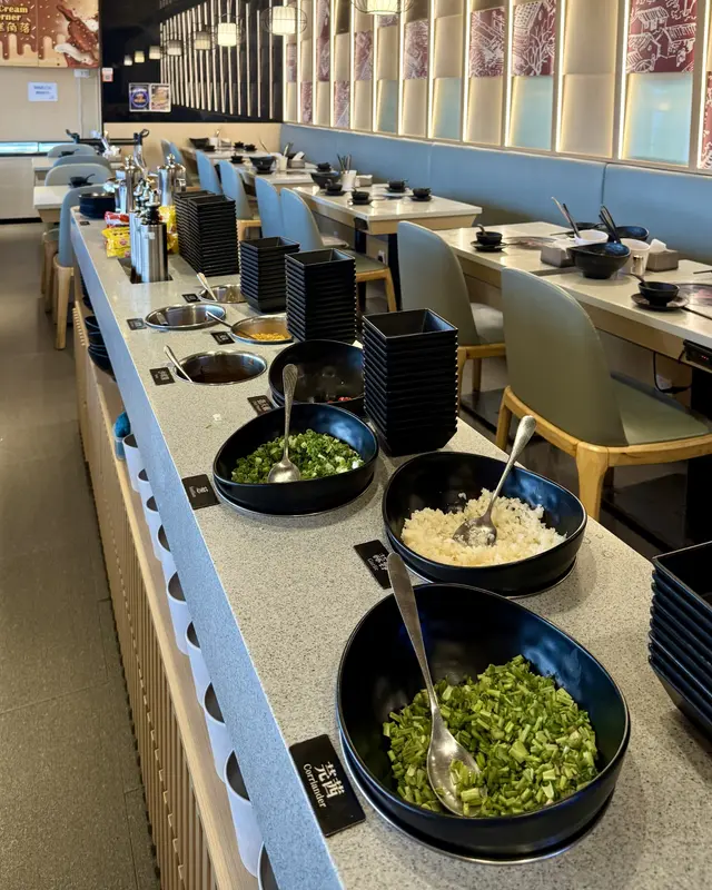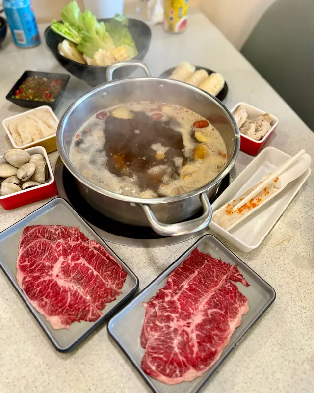 食到咁上下就可以轉湯底打邊爐,可以免費升級鴛鴦鍋,我哋就揀咗台式藥燉排骨湯底,淥嘢前先飲啖湯,好重藥膳味,湯料排骨份量都唔少。肉類、海鮮QR code落單,多款火鍋配料、醬料、汽水同甜品都係自助形式。