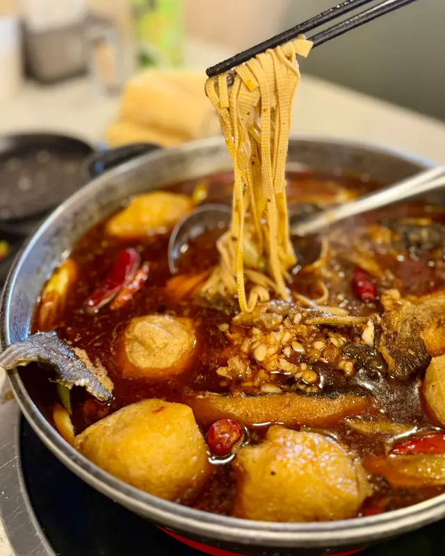 第三款煲我哋試烤魚,有六款口味:麻辣、香辣、酸辣、醬香、番茄同冬陰功,簡直選擇困難症,最後要香辣味,可自選辣嘅程度,味道香又唔會辣到食唔到,選用原條清江魚,魚肉緊實又彈,一路煲住一路食,依然保持形態無話煲到爛晒,肉質又唔會好老,鋪滿辣椒、蒜蓉、萵筍、鮮雲耳、豆皮麵,仲有豆卜可以吸湯。