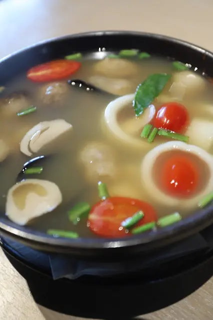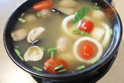 「泰式酸辣海鮮湯」($158)酸辣度適中,十分開胃刺激,中蝦、帶子、青口、魷魚等海鮮十分新鮮,滴少許青檸汁到湯裡,湯味就更清新怡人了,相比起較常喝到的「冬蔭功」,我更喜歡這湯的味道呢!