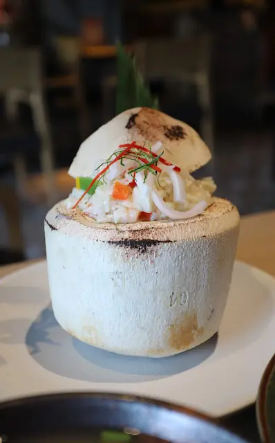 以原個椰青盛載奉客的「泰式椰青海鮮炒飯」($238)味道挺好,椰汁味濃,飯粒較為黏口,有別於一般的炒飯。這炒飯的材料除了多款海鮮外還下了少許椰子肉和椰絲,也豐富了這炒飯的口感。