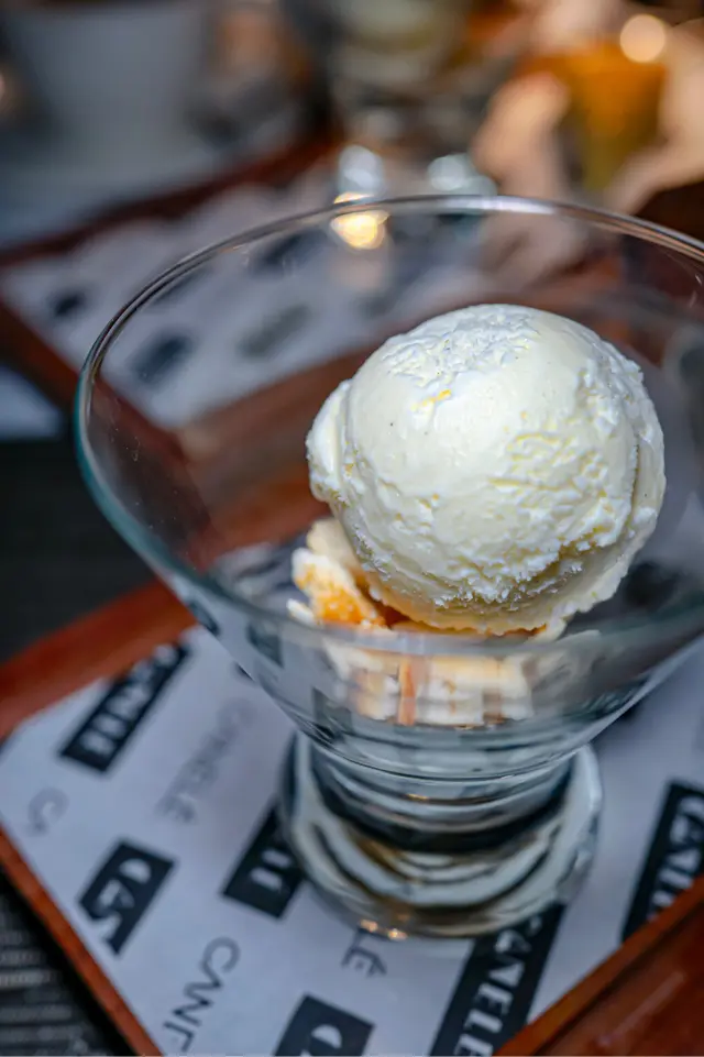 兩者仲配埋雲呢拿雪糕同糖霜餅,連埋本身嘅甜品一齊食又有另一番層次同滋味。