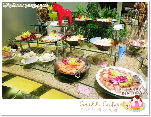 餐廳亦提供了預先調好的四款沙律,還有切件芝士、笑牛牌芝士、冷切肉、煙三文魚及鮫魚。