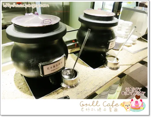 重回正軌,餐湯也是自助的,這天有芝士蛋花清湯及西蘭花忌廉湯。