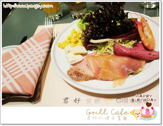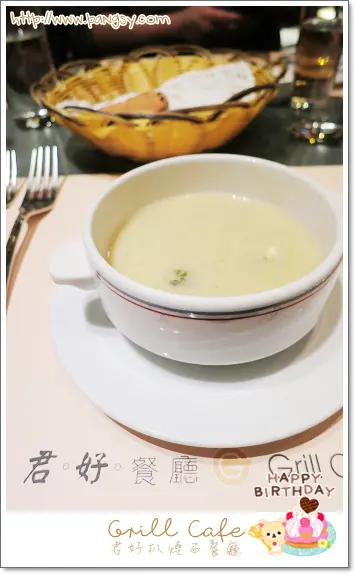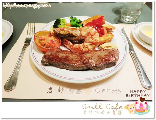是晚就是於酒店內的《君好扒燒西餐廳》替男友慶祝生日嚕,記得早年男友曾提及此餐廳(至少說了三、四年),可是因種種原因而未能前來,最後就不了了之。直到男友生日前數星期,我問他有什麼東西想吃,還找了數間覺得合心的餐廳供其選擇,卻統統看不上眼。然後他自行從網上找呀找,忽然閃出這間已埋藏心底良久的wishlist店,我即時拍手讚好說「好,即刻訂檯~」。