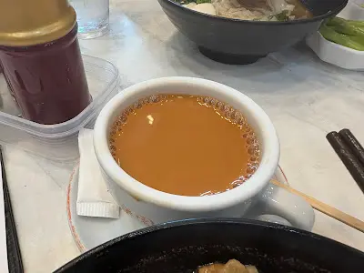 石門的麵《樂園》 陳真等级42025-09-07135 浏览 关注 近來,石門的飲食又來了個小型的去舊迎新了。而其中的一個新面孔,就是《樂園魚蛋粉》了。這雖然是連鎖店,但彌補了區內麵食店的不足。有一天經過時,發現不用排大隊,可直入直坐直點餐啊。這樣,就決定入來坐低,食碗麵。1去到任何麵食店,我幾乎都會食同一樣野。而這就是牛腩雲吞粗麵了。這一間《樂園》,主打的雖然是魚蛋粉,但入到來卻是充滿牛腩麵香味的。所以,我二話不說就要了牛腩麵。這兒的牛腩,非常之香口,麵湯混合了腩汁亦直接令到味道升華。而雲吞同麵條的質素也是不差的。跟餐,是一杯熱奶茶。味道上同口感上是不過不失的。奶味屬一般,但勝在入口夠滑。算是幾好的一個麵餐。不想多吃東西的中午,簡單地來這兒食碗麵,可以說是一個幾好的選擇。以上食记乃用户个人意见 , 并不代表OpenRice之观点。赞好分享石門的麵《樂園》 樂園魚蛋粉 https://s.openrice.com/QrLT0najU00检举 张贴 评分4味道3环境4服务4卫生4抵食用餐途径堂食用餐时段午餐